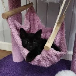 “Molly is one of the sweetest cats we have ever met. She is curious, active, and inquisitive. But she also snuggles with us. In fact, she often lets my wife sing to her while being held in her arms. Molly and her older sister Carmella still have their differences–Molly wants to play ALL the time. But we are sure they will learn to tolerate each other in time. Molly loves her new forever home and we thank everyone who made this adoption possible!” –David