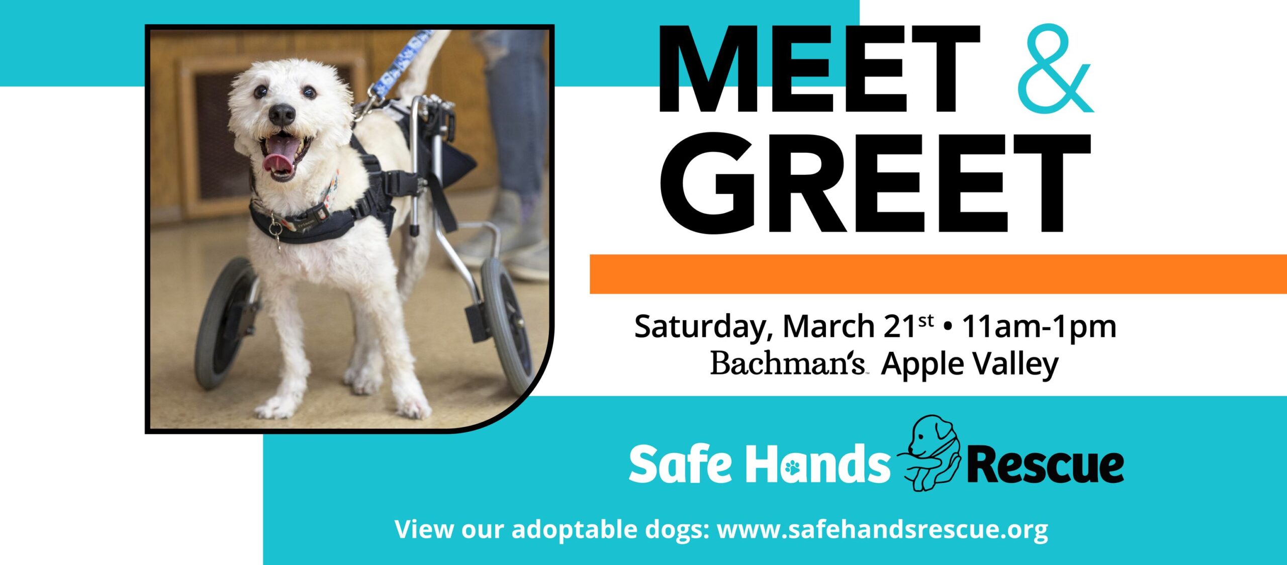 Bachman's in Apple Valley 7955 150th St W, Apple Valley, MN, United StatesJoin us at Bachman’s in Maplewood for a Meet & Greet with Safe Hands Rescue where available puppies and adult dogs will be in attendance ready to find their forever families. You’ll be able to meet new four-legged friends and discover which lawn and garden products are safest for your pets. We will start taking…