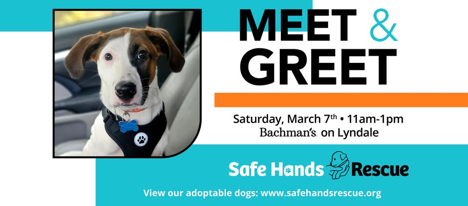 Bachman's at Lyndale Main Store 6010 Lyndale Ave. S, Minneapolis, United StatesJoin us at Bachman’s Lyndale for a Meet & Greet with Safe Hands Rescue where available puppies and adult dogs will be in attendance ready to find their forever families. You’ll be able to meet new four-legged friends and discover which lawn and garden products are safest for your pets. We will start taking visitors…