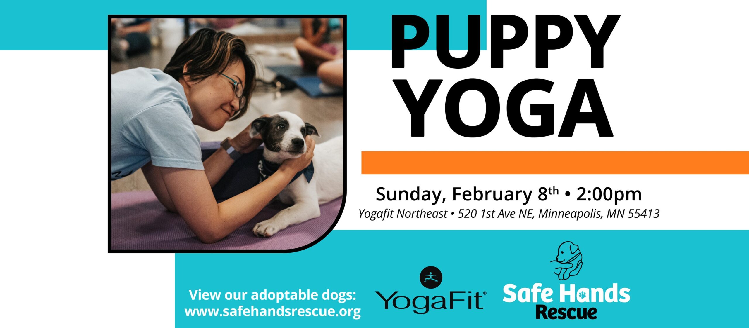 YogaFit Northeast 520 1st Ave NE, Minneapolis, MNCome join the fun and excitement of Puppy Yoga with some adorable puppies from Safe Hands Animal Rescue!!!! Ticket price is $25 per person. Space is limited, so get your…
