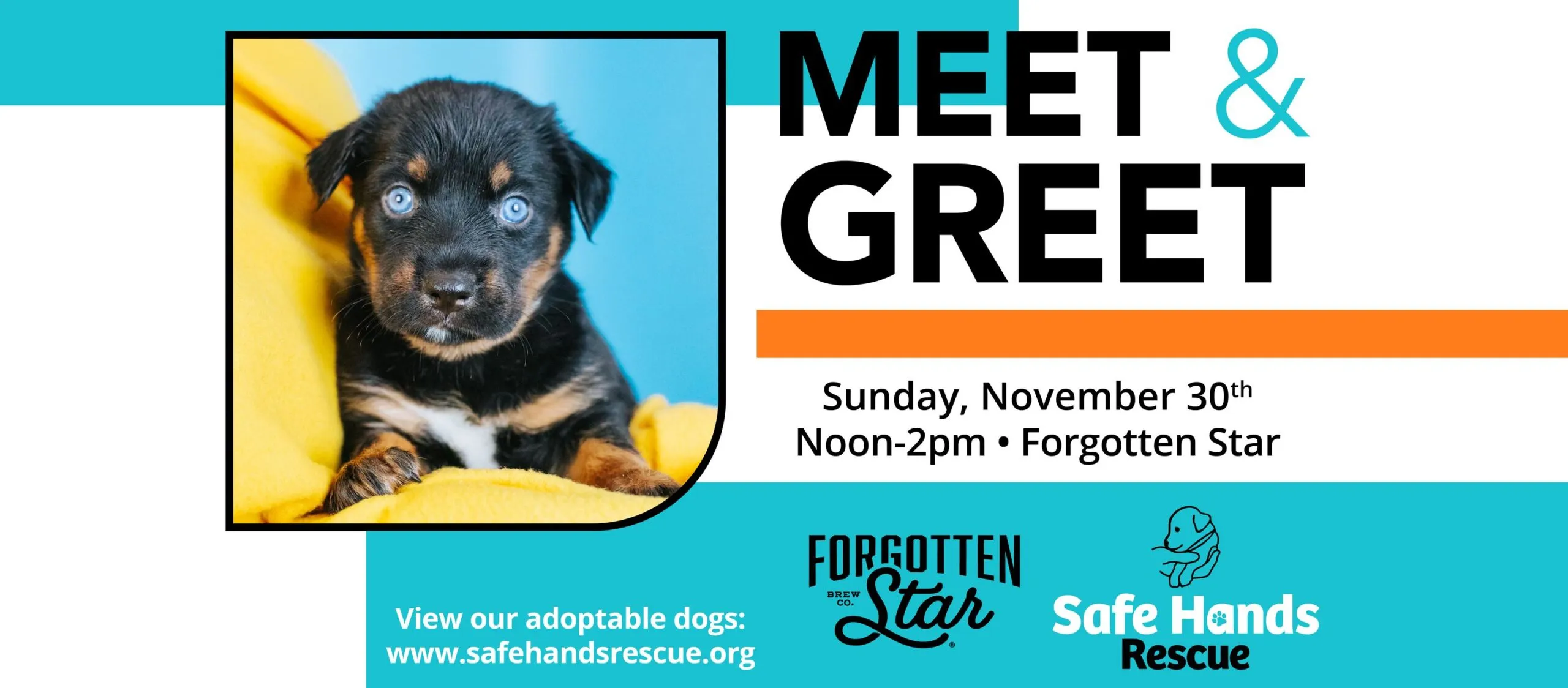 Forgotten Star Brewing Co 38 Northern Stacks Dr, Fridley, MN, United StatesJoin us at Forgotten Star Brewing for a Meet & Greet with Safe Hands Rescue, where available puppies and adult dogs will be in attendance ready to find their forever…