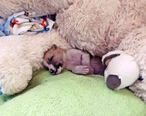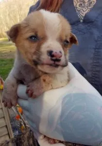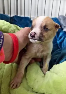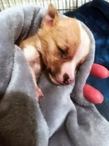 Dobby arrived at the shelter, a tiny baby, nearly blind.