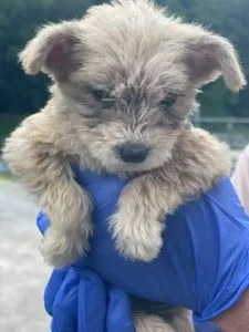 Owen arrived at The Safe House a tiny pup, just barely over 2 lbs. He was also without the use of his hind legs. He had been dragging himself around causing open wounds on his underside. A vet visit showed no broken bones but rather something neurologically awry. We were told his condition was most likely permanent.