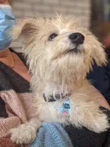 Owen’s adventurous spirit comes out in his love for exploring. He enjoys checking out new parks and learning to walk on a leash. He loves to meet new people and dogs. When it’s time to wind down, he likes to find a lap to snuggle in for the evening and loves to give kisses. While Owen will likely always have some limitations, his fighting spirit and loving personality will steal your heart.