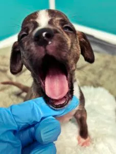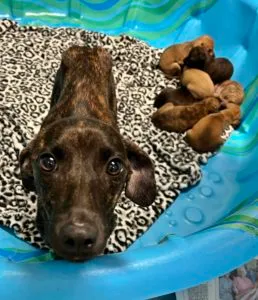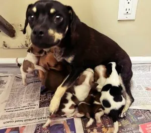 We currently have 40 dogs and 2 kittens at The Safe House with more coming every day. Yesterday two little (and VERY skinny) mommas, each with 7 babies, arrived. The wee ones are all about 4 weeks old and weigh under 2 lbs. I’m pretty sure The Safe House is the Cutest Place on Earth right now!